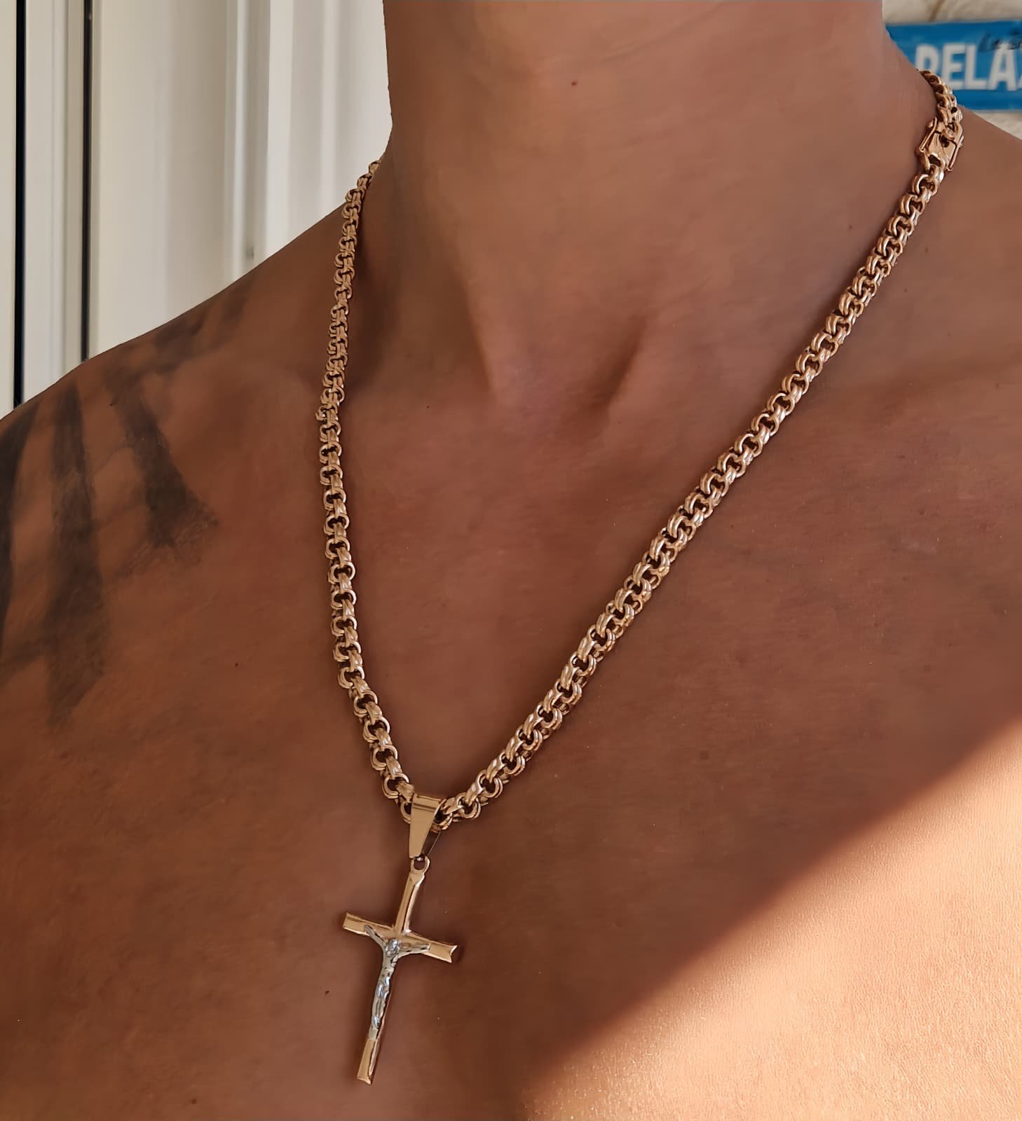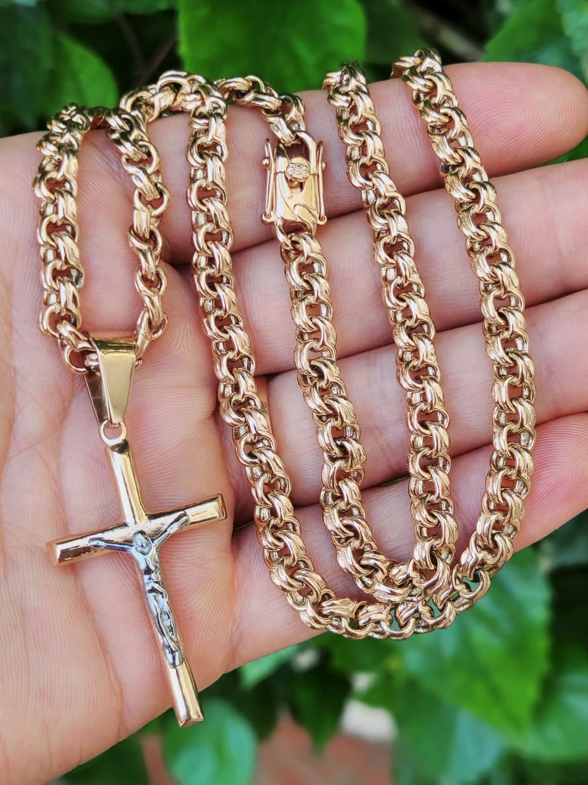 Grandinėlė pagaminta iš titano ir padengta 585 prabos rausvu auksu. Naudojamas 5 mikronų storio auksavimo sluoksnis, kuris užtikrina ilgaamžiškumą ir atsparumą dėvėjimuisi. Spalva vizualiai identiška pilnai rausvam auksui.